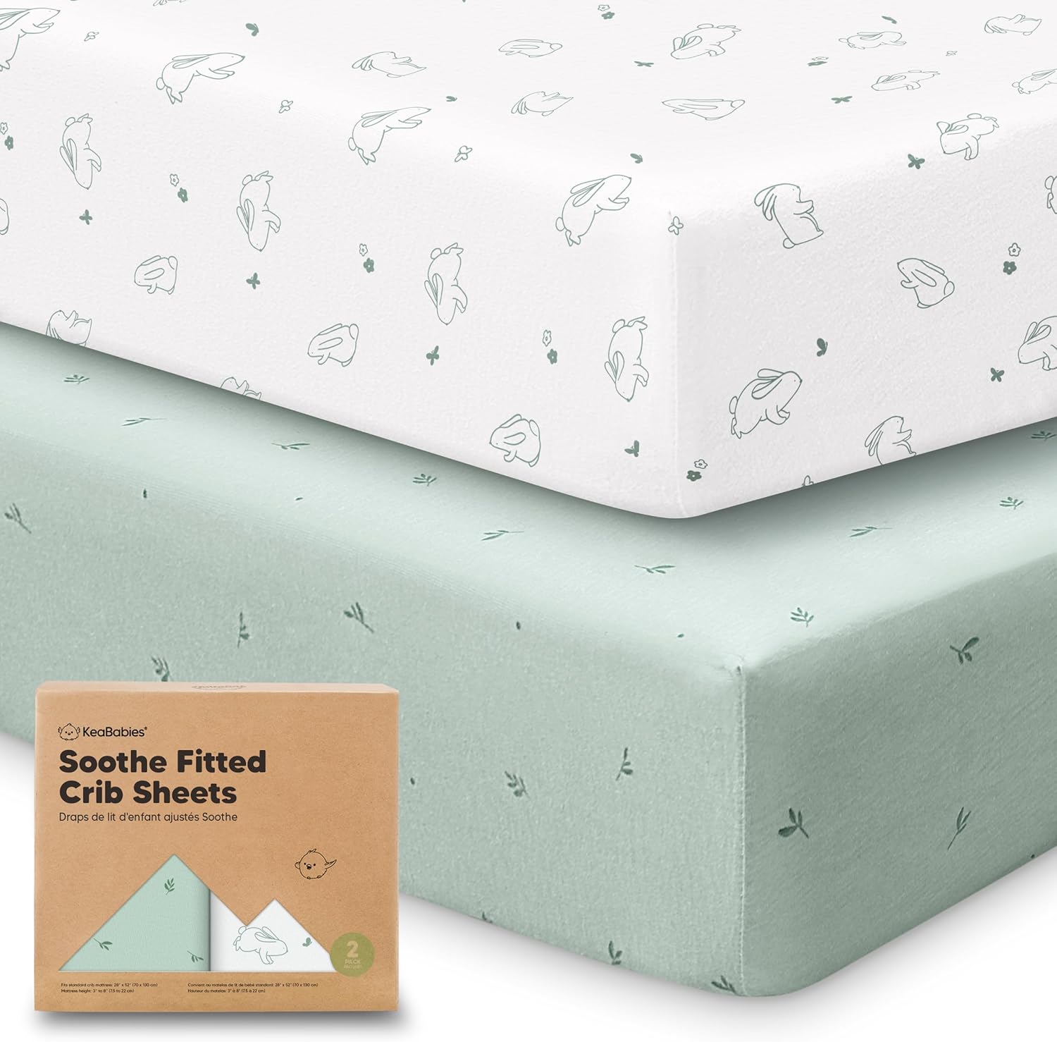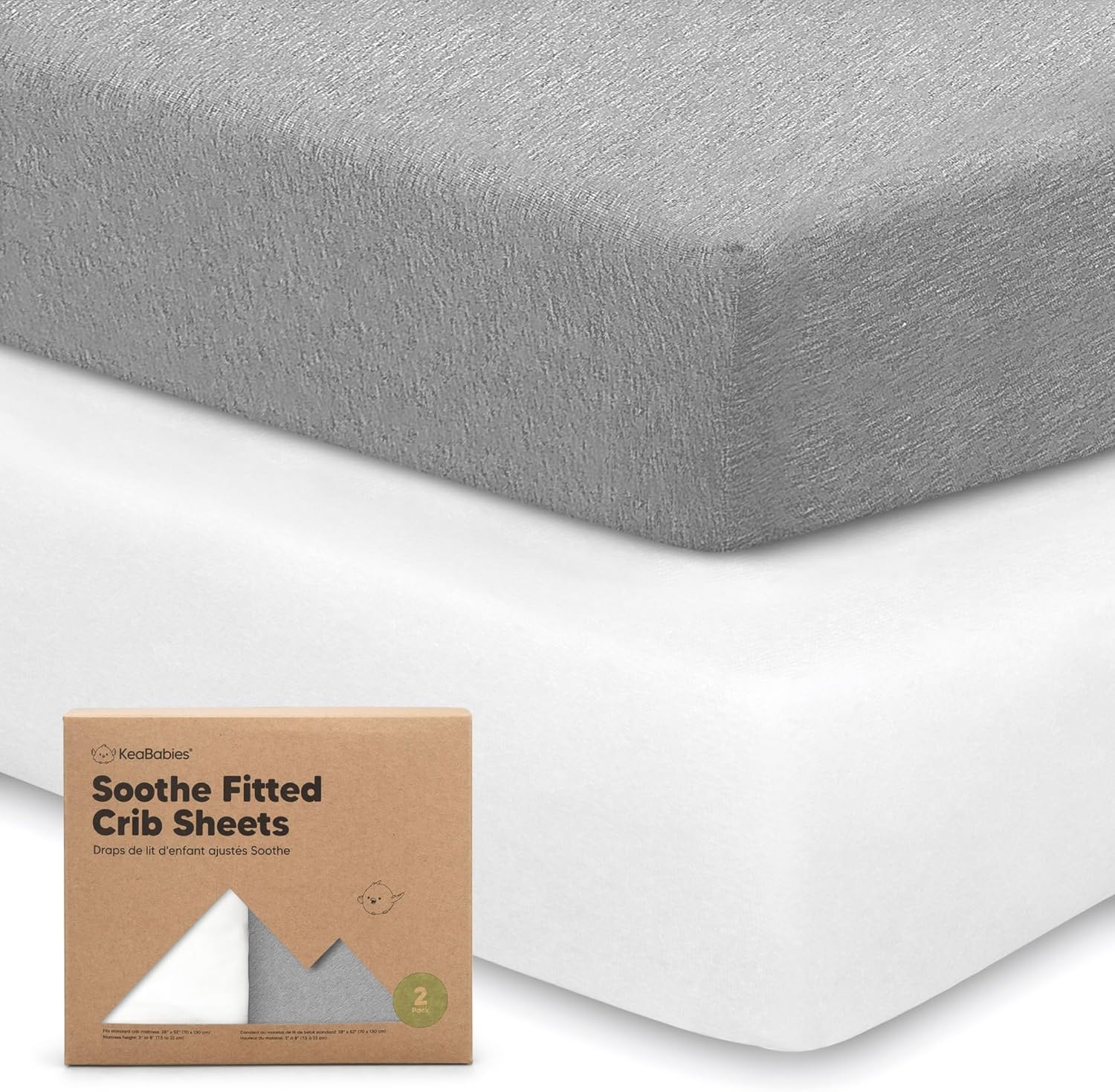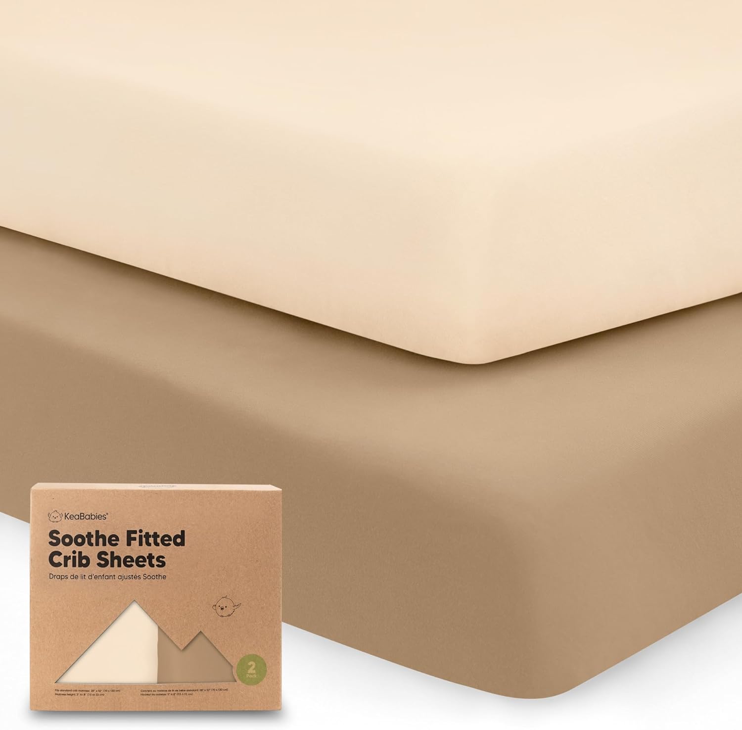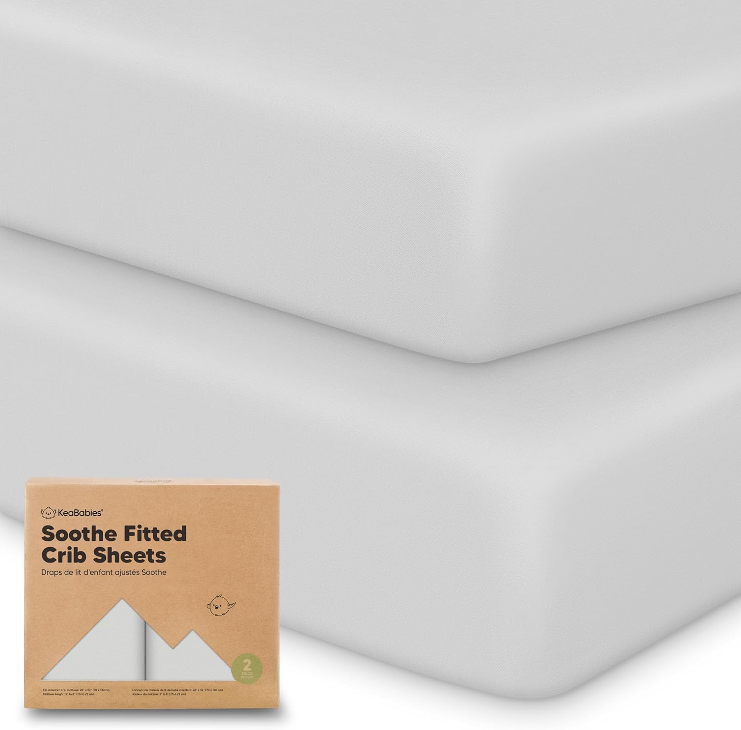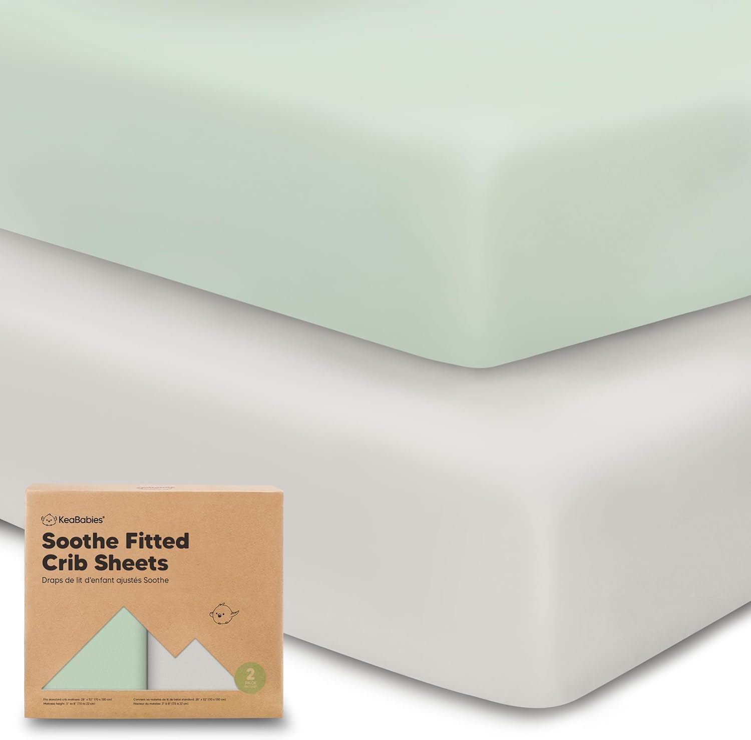 2-Pack Fitted Crib Sheets – Each KeaBabies Soothe Baby Crib Sheets set comes with two organic crib sheets for boys and girls that can perfectly fit the standard nursery crib mattresses sized at 52” x 28” and height of 3” to 8”.