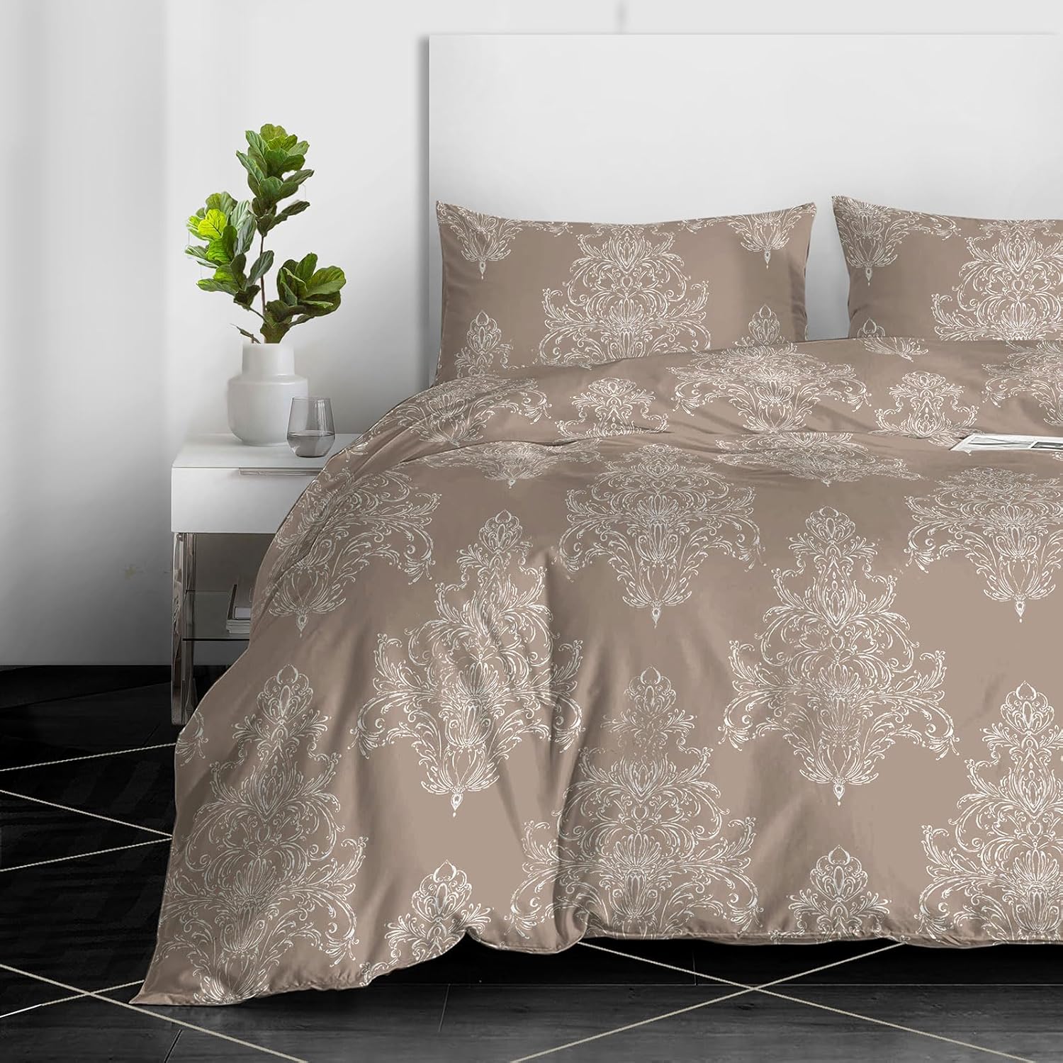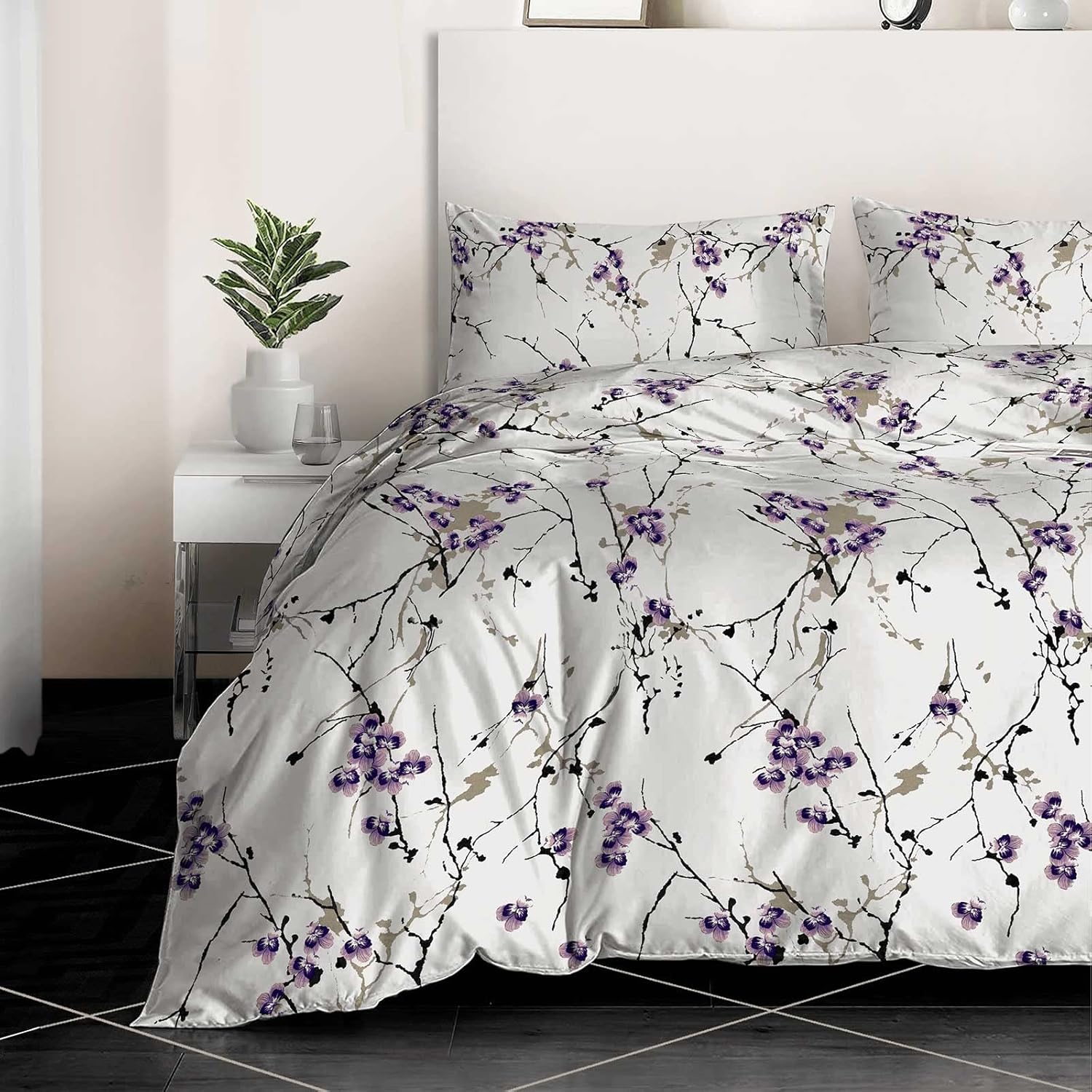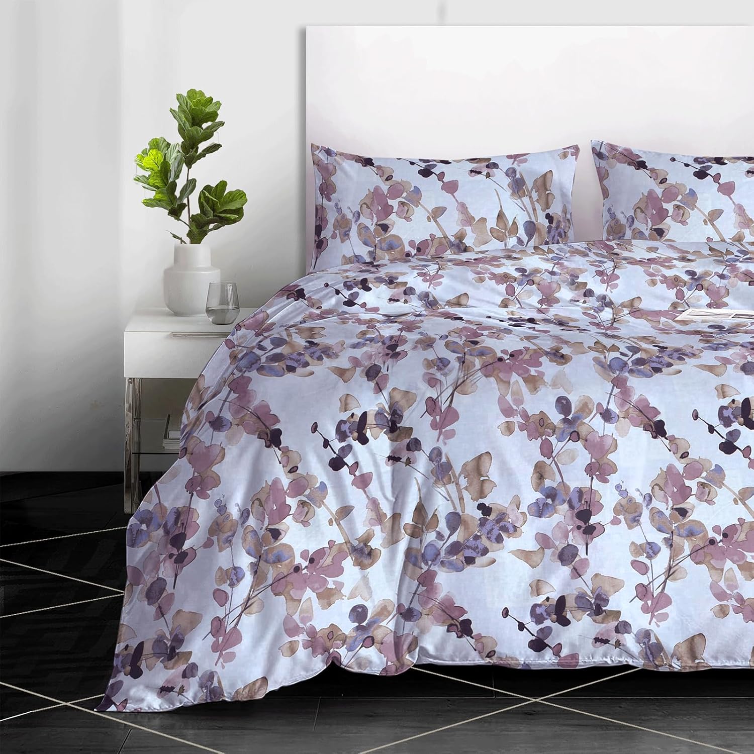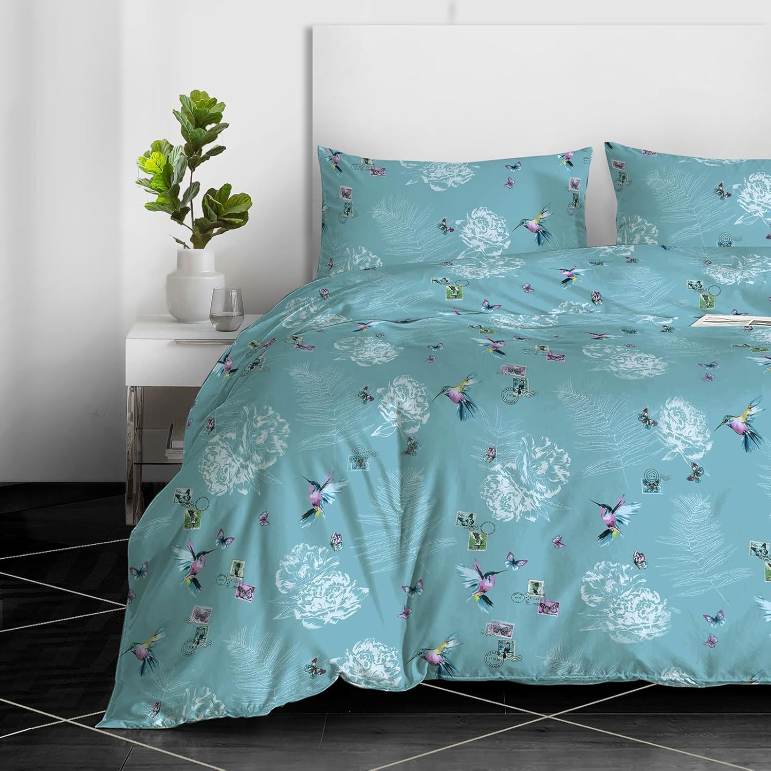 3-Piece 100% Egyptian Cotton Printed Duvet Cover Set – 400 Thread Count Bed Cover with 2 Pillowcases – Reversible Quilt Bedding Set