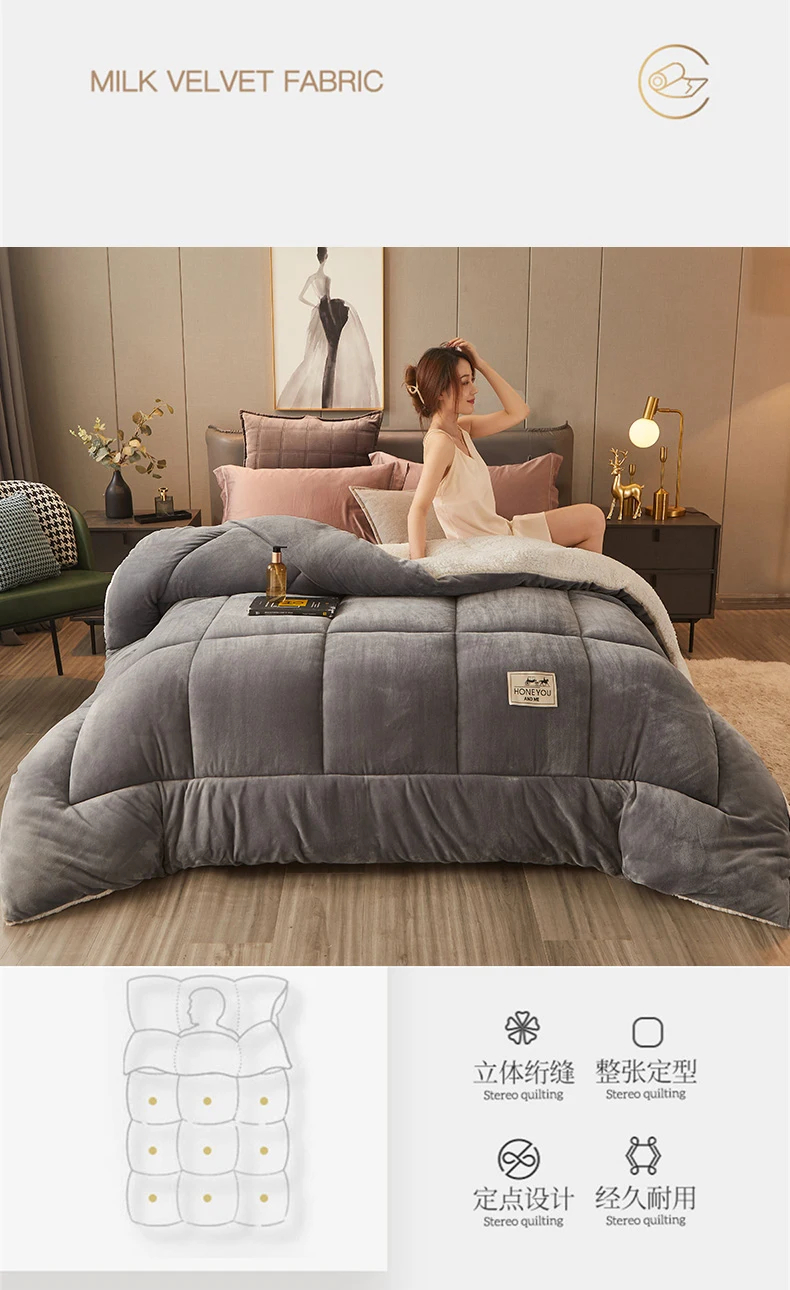 Lamb velvet quilt winter thickened quilt warm single double blanket autumn winter quilt core cotton comforter space quilt