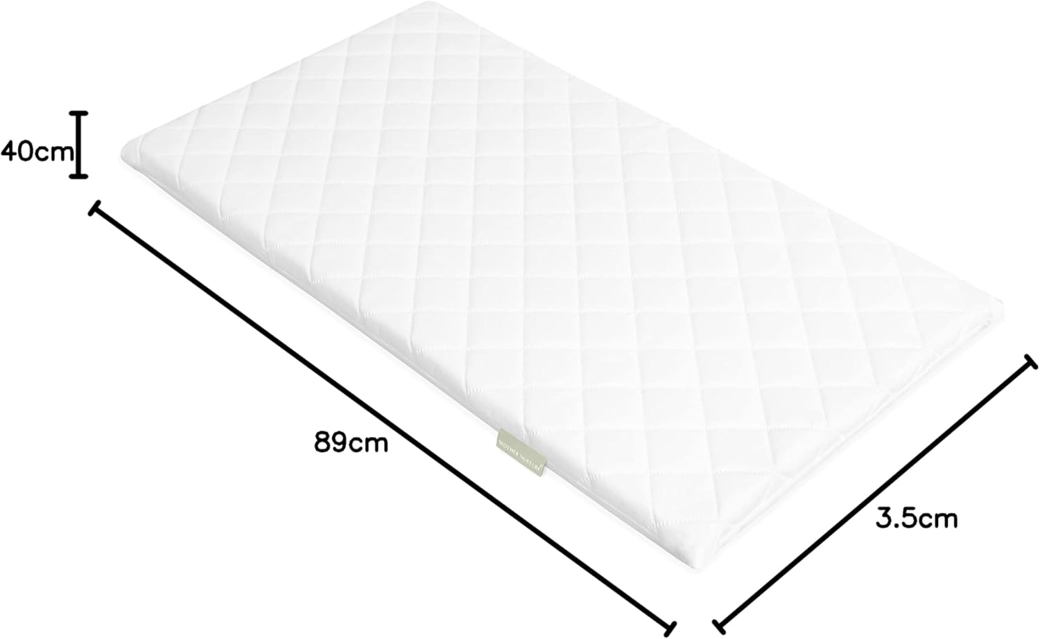 Made to fit. Fits Mamas and Papas and Crib beds that specify an 89 x 40 x 3.5cm mattress. Suitable for 0-6 months. Also available in 80 x 36cm.