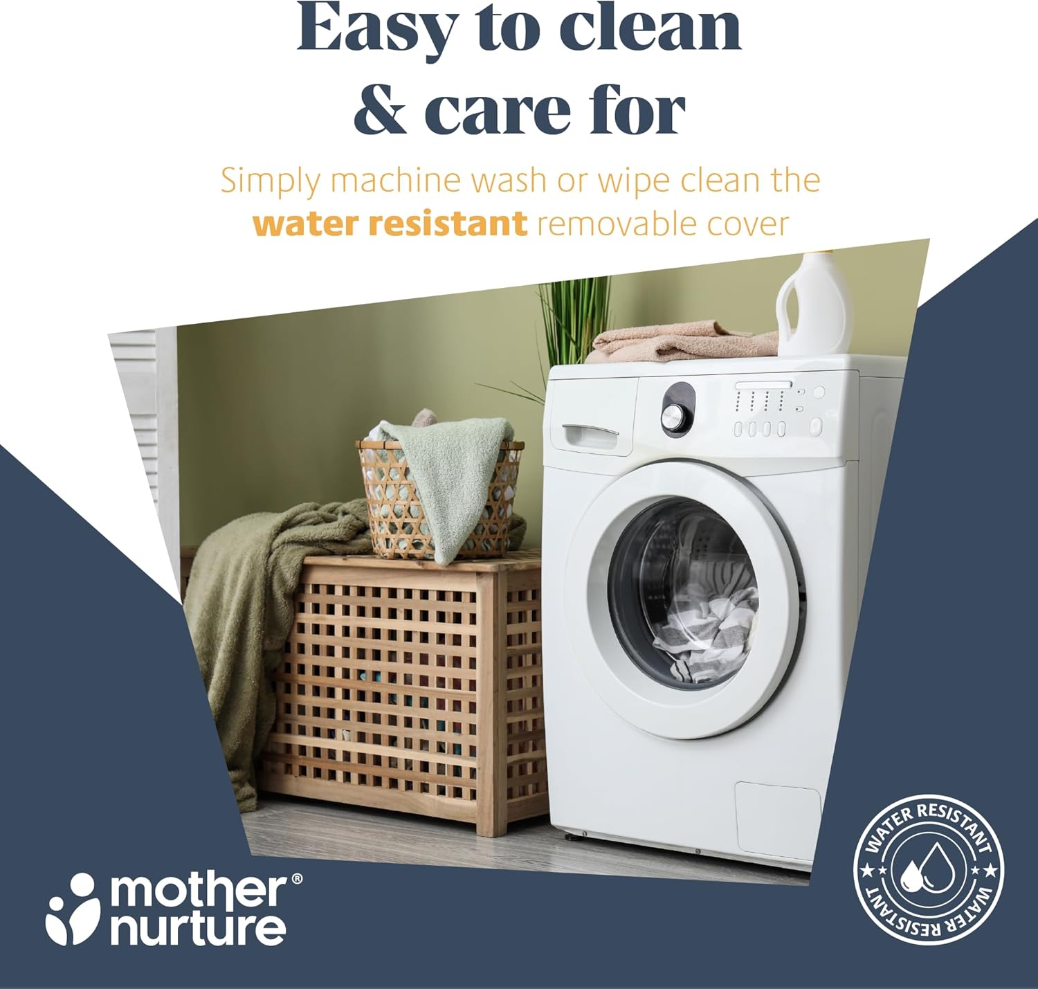 Easy to clean. The removable cover is water resistant and can be wiped clean or machine washed at 40C.