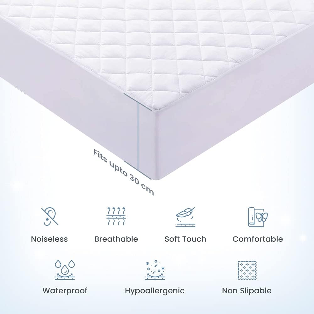 Quilted Waterproof Mattress Protector Single Hypoallergenic and Noiseless Fitted Sheet Cover Double Bed Extra Deep 100% Waterproof Mattress Protector Cot Mattress Topper White