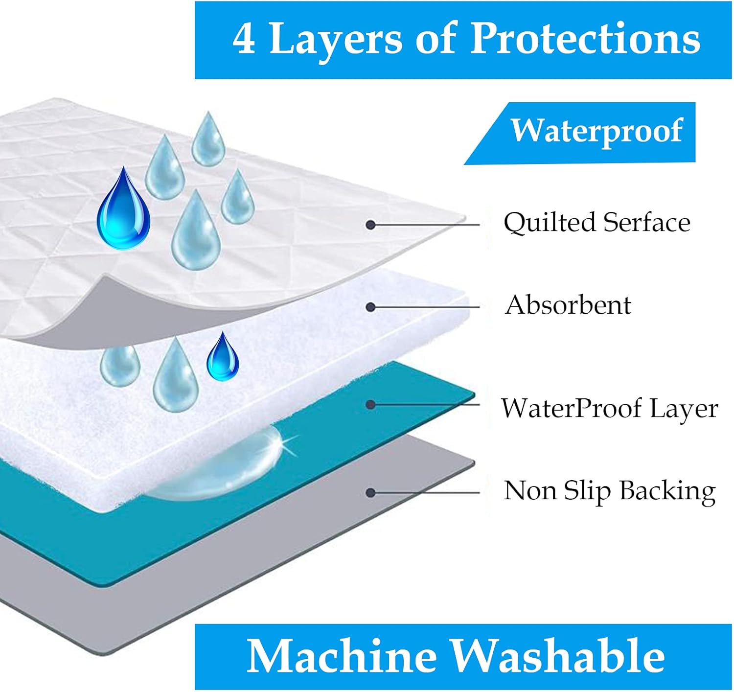 • 100% Waterproof Protection: Featuring a quilted, water-absorbent design, this protector shields your mattress from spills, stains, and moisture, extending its lifespan.