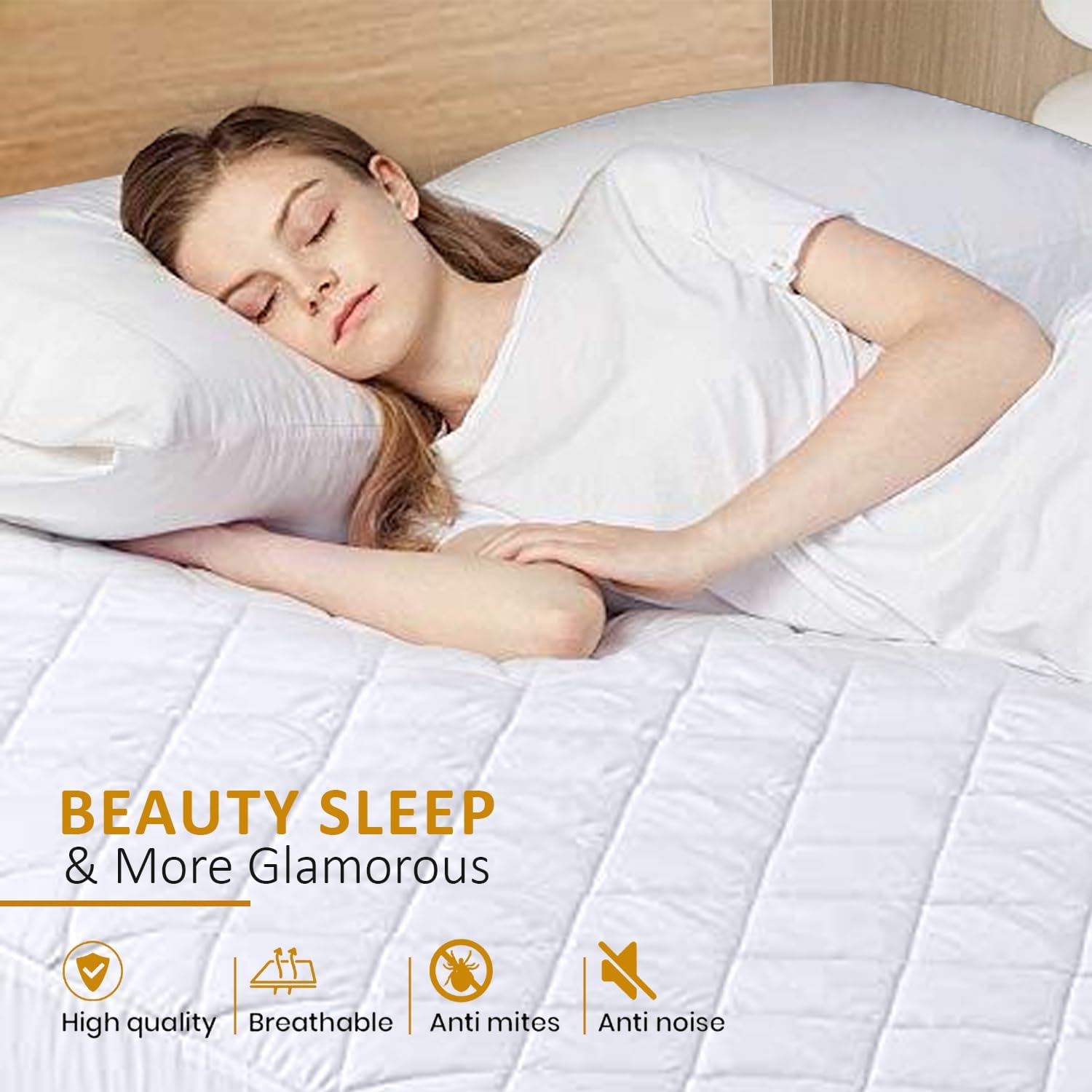 Quilted White Mattress Protector Breathable Anti-Allergy Topper Washable Fitted Deep Pockets Mattress Bed Cover
