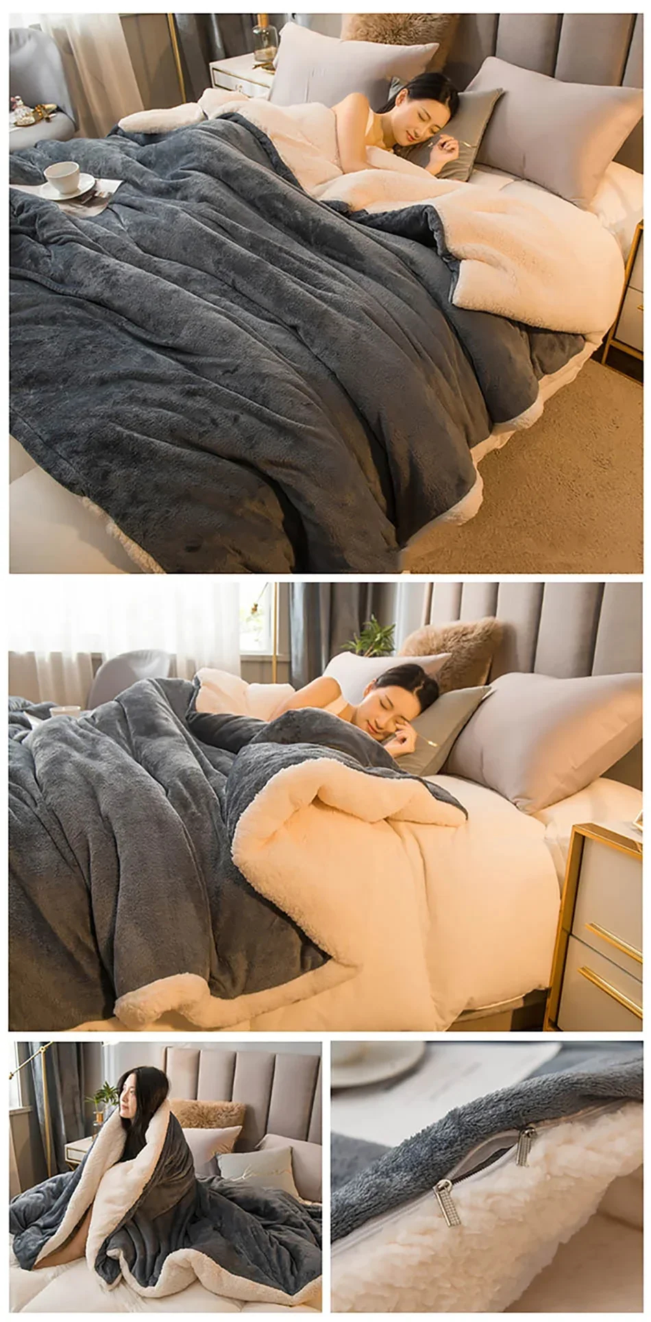 1.Suitable for winter plush thick lamb quilt cover, quilt cover and blanket dual purpose. Warm, soft and comfortable, good drape, no ball, no fading, no hair, suitable for cold areas.
